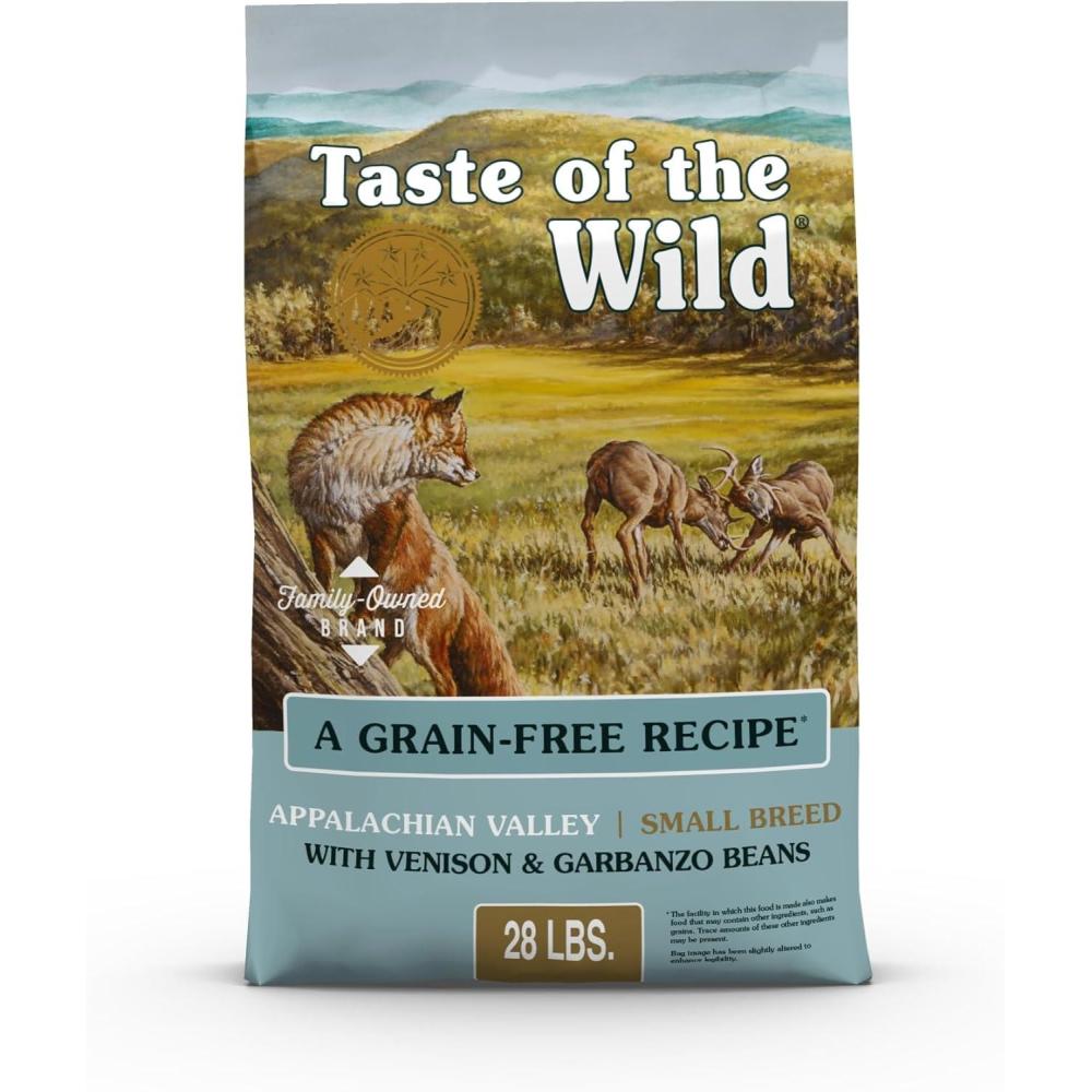 Taste of the Wild Appalachian Valley with pasture-raised VENISON small kibble dry dog food for small breed dogs; REAL MEAT is the #1 ingredient; high-protein (32%) to help support bones, joints and LEAN, STRONG MUSCLES in small breed dogs