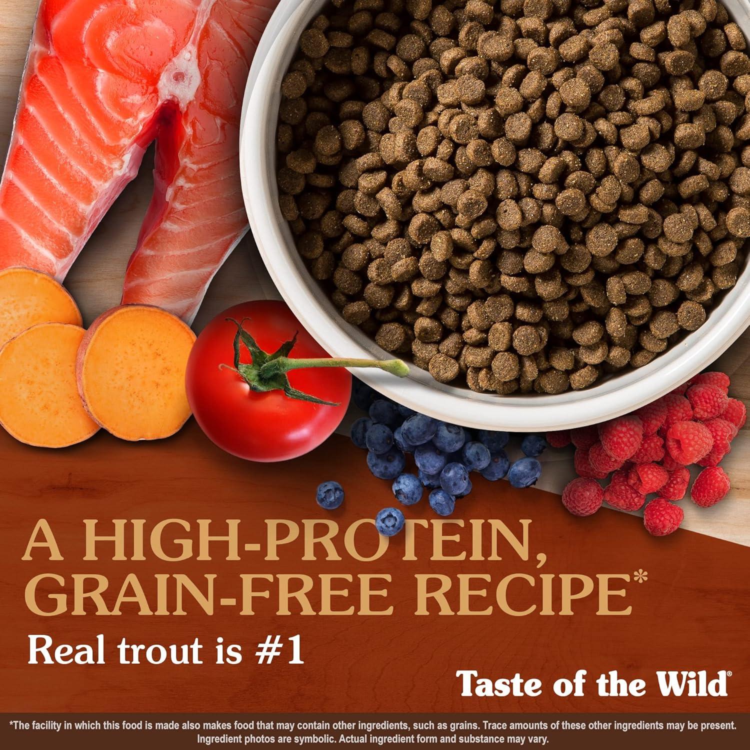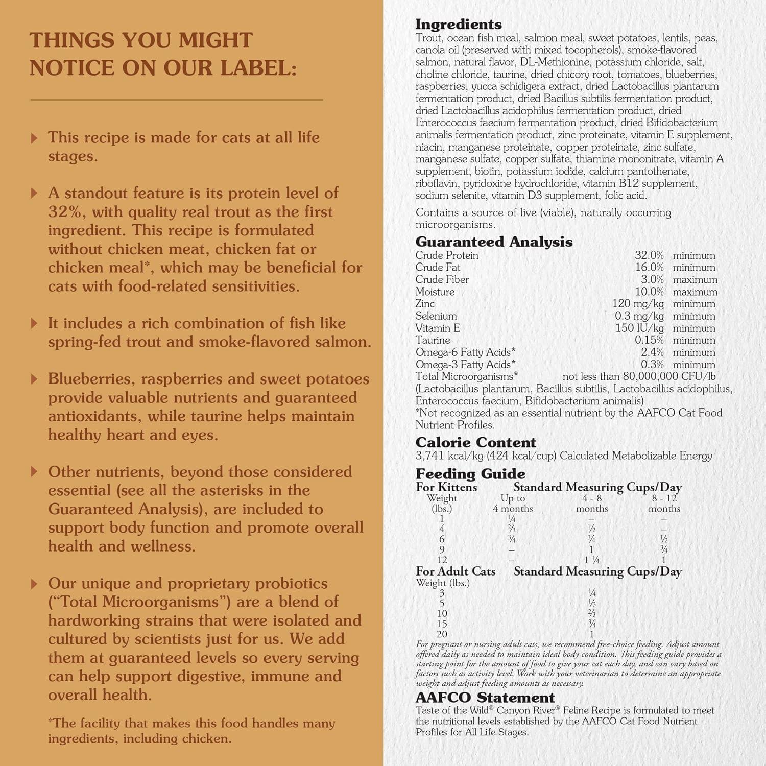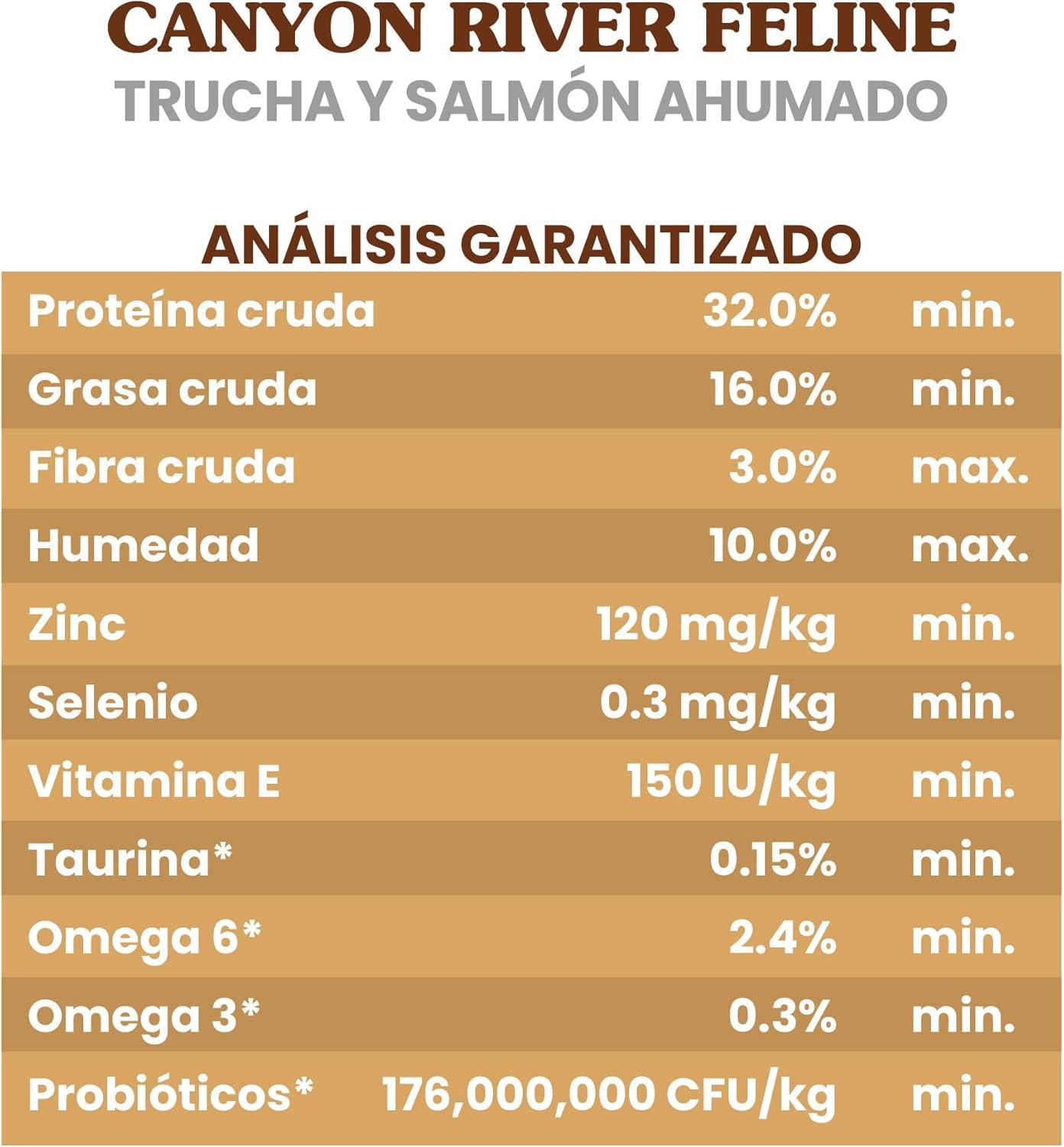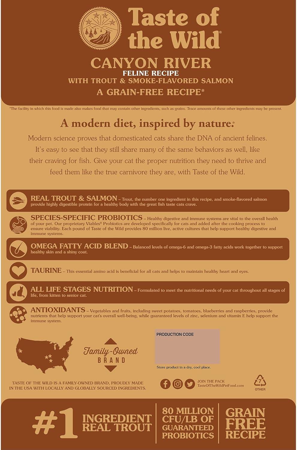 Taste of the Wild Canyon River with TROUT and SMOKE-FLAVORED SALMON dry cat food; high protein content (32%) helps support bones, joints and a LEAN, HEALTHY BODY CONDITION; fish is the only source of animal protein in this recipe, so it may be a good choice for cats with food-related sensitivities