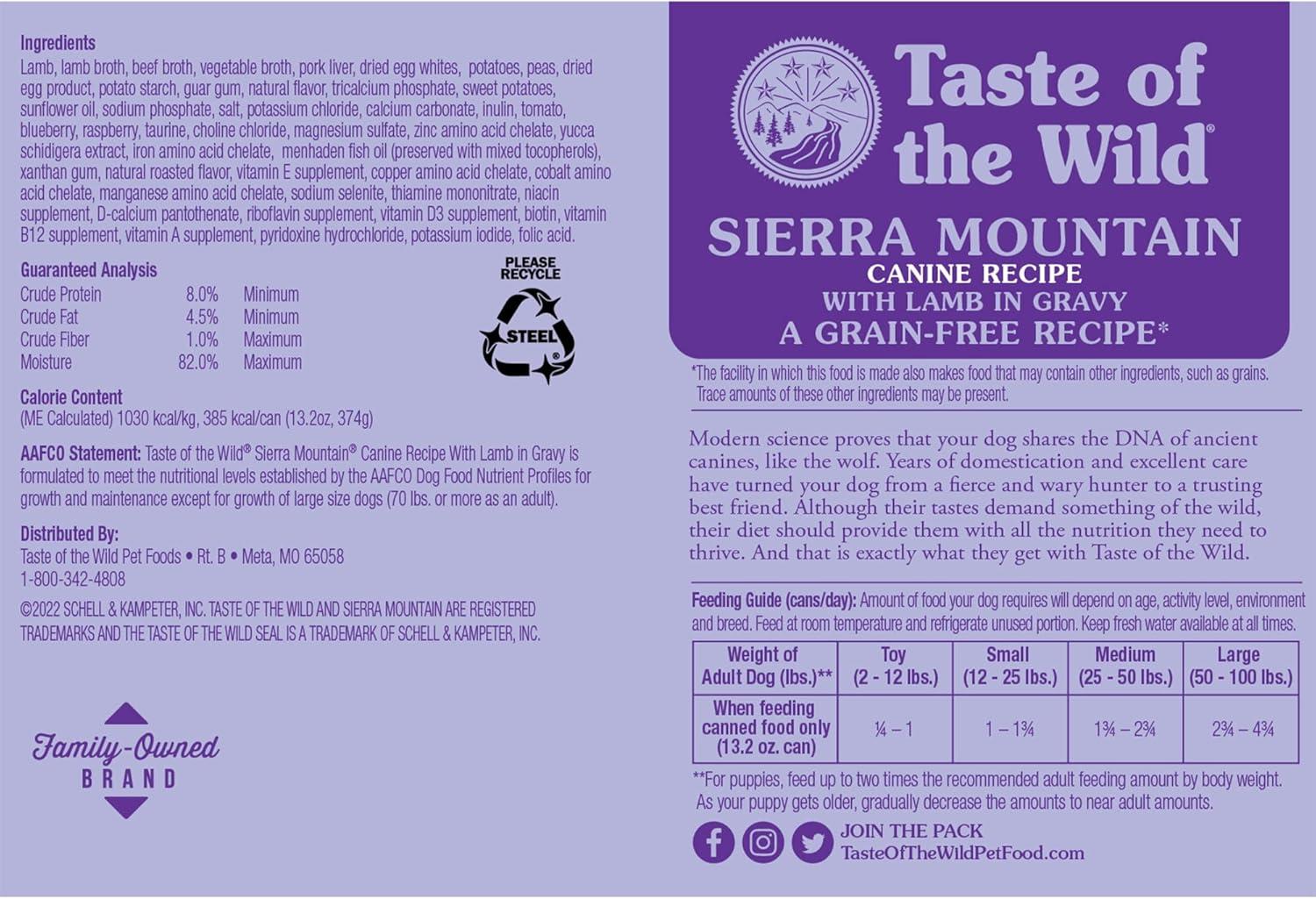 Taste of the Wild High Prairie with BISON in gravy canned dog food; REAL MEAT is the #1 ingredient; a unique and flavorful blend of proteins helps support bones, joints and LEAN, STRONG MUSCLES