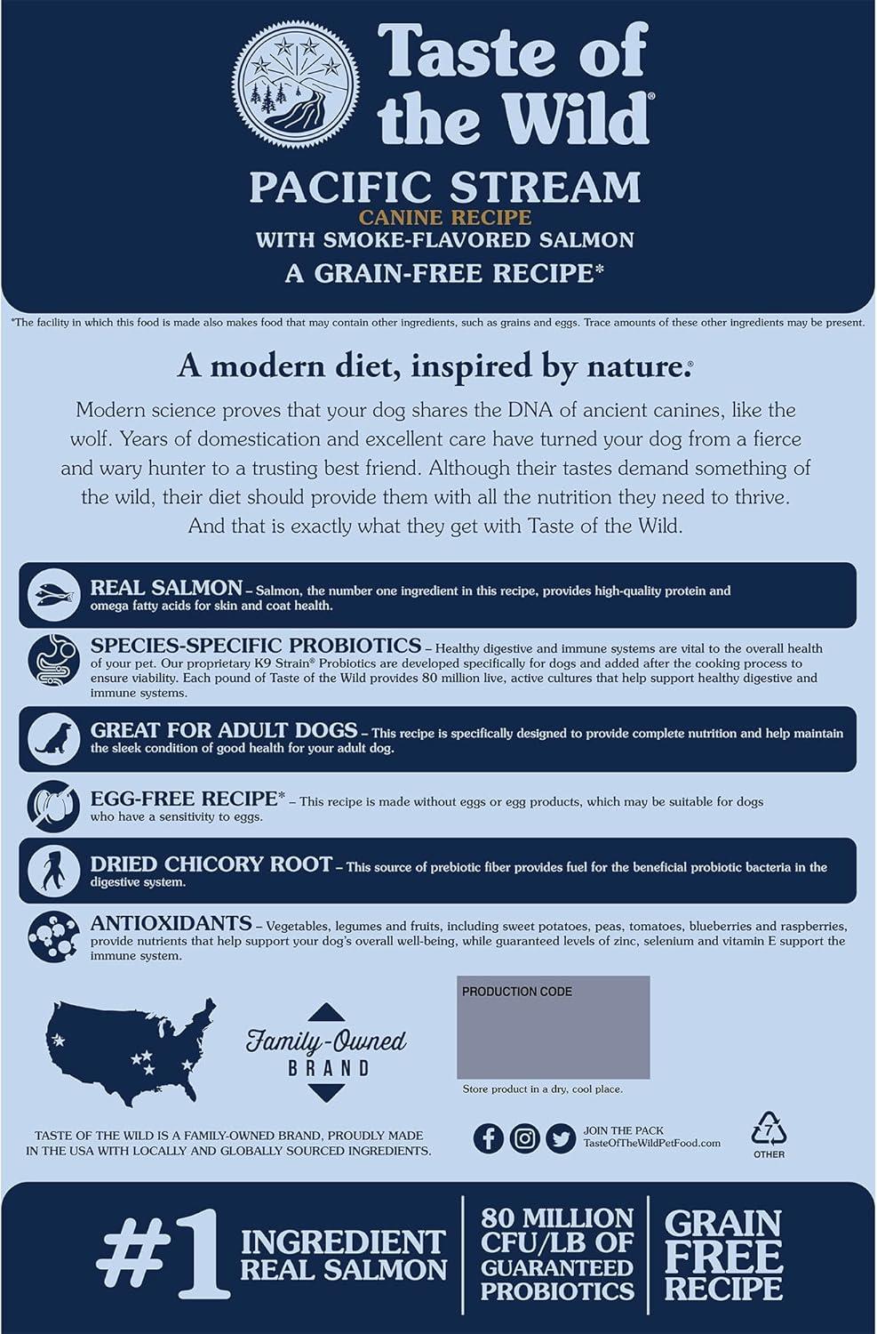 Taste of The Wild Pacific Stream Grain-Free Dry Dog Food With Smoke-Flavored Salmon 28lb(Grain-Free Smoke-Flavored Salmon)